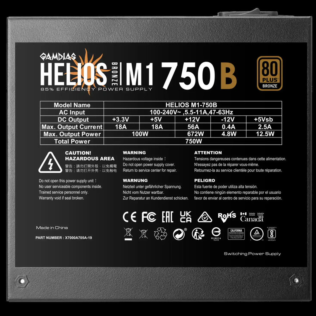 Napajanje 750W Gamdias Helios M1-750B Bronze